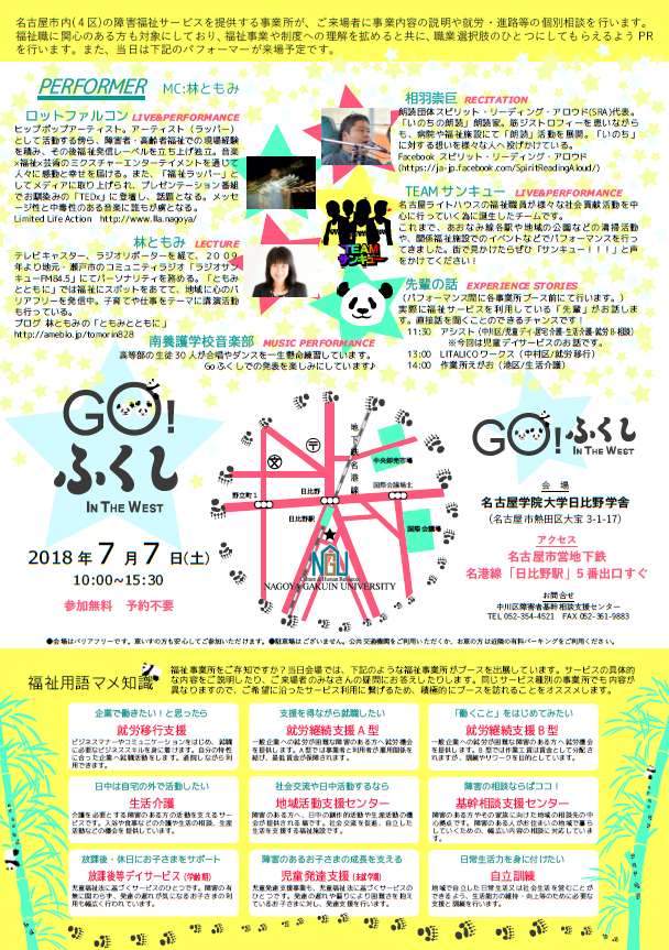 また対象は障害当事者だけではなく、福祉職を目指している方へ向けて仕事の紹介、地域の方にも楽しんで頂くために、スタンプラリーや、ミニライブ等をお楽しみいただけます。