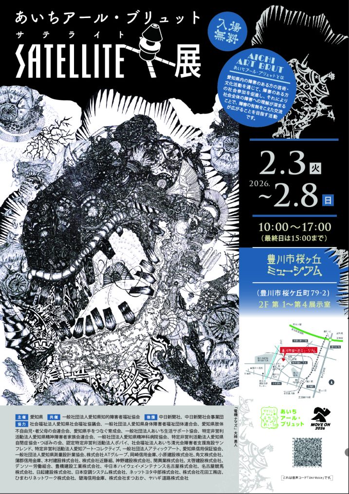 この度、三河地方の方にも気軽に御観覧いただけるよう、「あいちアール・ブリュット・サテライト展」を、豊川市桜ヶ丘ミュージアムで開催します。三河地方での展示は2019年度から開催しており、今回が7回目となります。