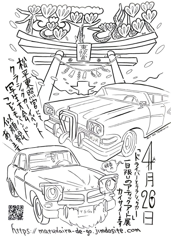 徳川三百年の礎となった松平発祥の地、松平郷にて、あいちアール・ブリュット展入賞作家の赤尾綾香さんの「ドライバーとクラシックカー」が開催されます。当日は赤尾さん描いたクラシックカーも参加され、写生大会も行われます。日ごろの活動の成果を体験しに来てください!
