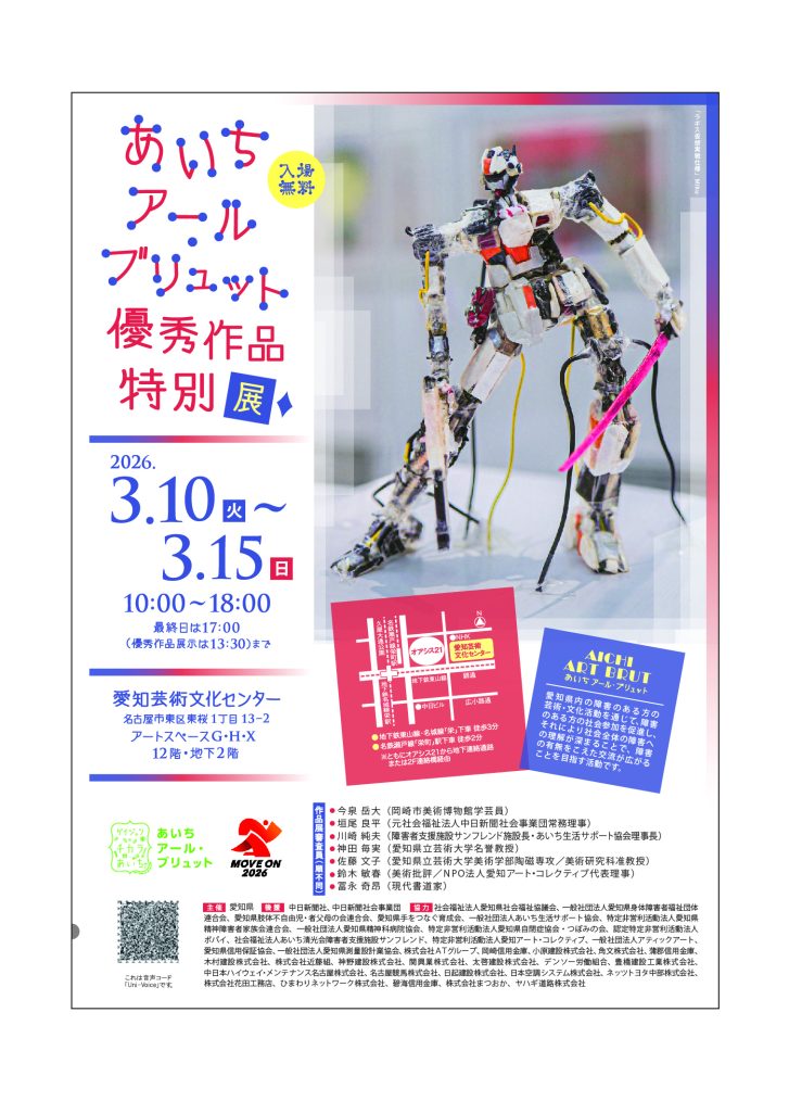 愛知県では、2025年9月に「あいちアール・ブリュット展」を開催し、県内の障害のある方から寄せられた作品を紹介しました(2025年8月12日発表済み)。