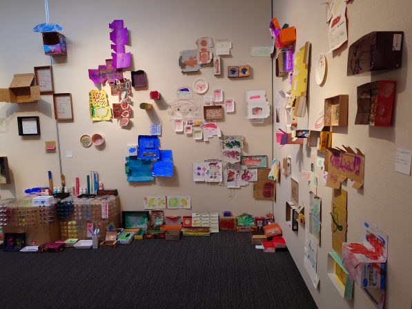 障害者施設等で芸術活動を体験する「出前講座」で制作された作品を展示しています。