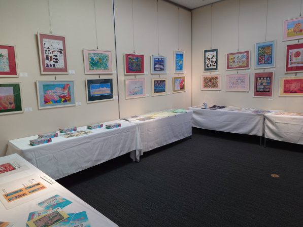 カンボジアの子どもたちが描いた「ありがとうの花」の作品を展示しています。