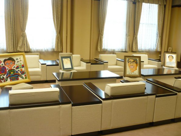 展示場所は、本庁舎3階の知事室の隣の応接室です。ぜひ、知事室の見学とあわせて、似顔絵をお楽しみください!